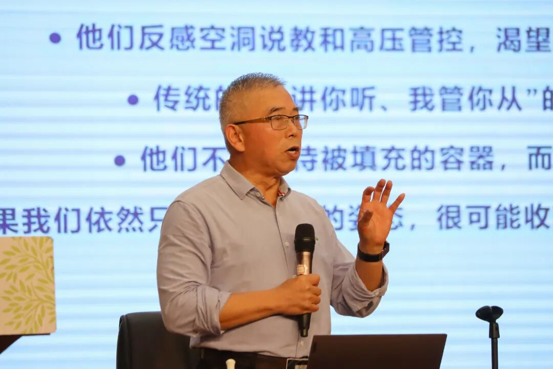 骆东风校长主持研讨交流会并点评案例。肇庆华赋学校校长助理崔海龙介绍了华赋学校德育工作的体系构建、特色活动、实践创新及阶段性成果。肇庆华赋的德育工作理念先进,实践深入,“高中有理念,初中有色彩,小学有温度,全校有高度”得到了与会专家一致认可。