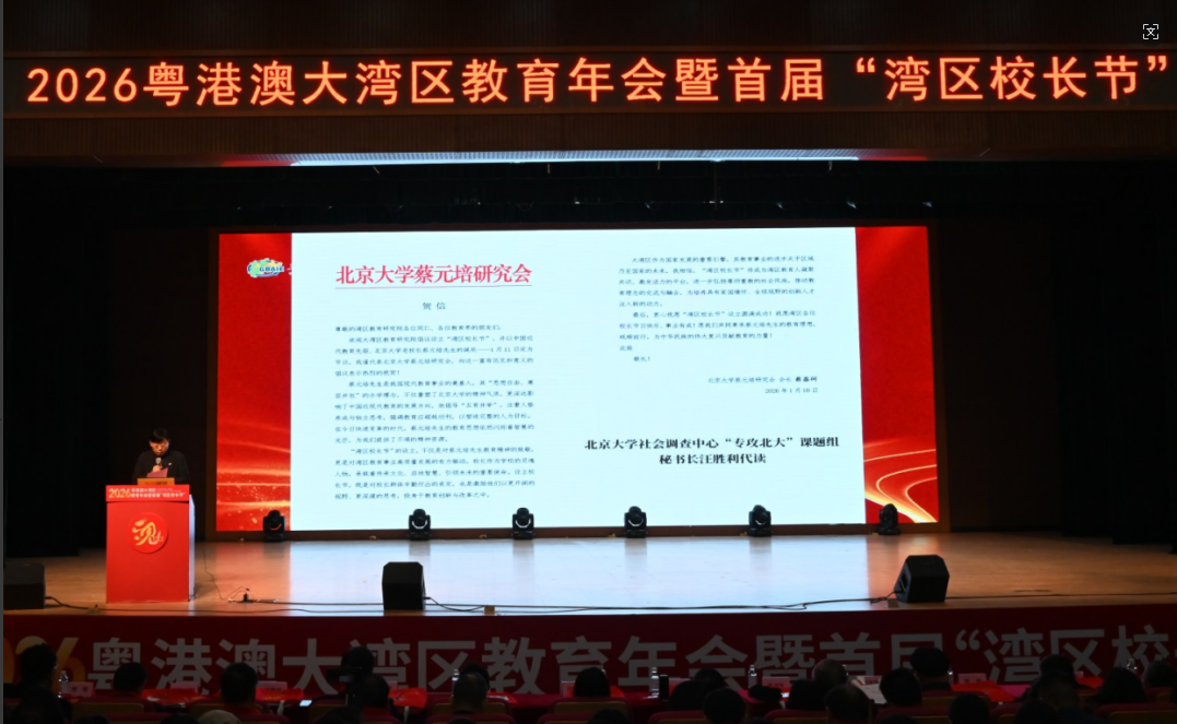 湾区(广东)教育研究院以中国近代教育先驱、北京大学老校长蔡元培先生的诞辰1月11日作为“湾区校长节”,既是对“思想自由、兼容并包”教育精神的传承,更是新时代弘扬教育家精神的重要创举。蔡元培先生倡导的“五育并举”,注重人格养成与独立思考,强调教育应超越功利,以塑造完整的人为目标。在今日快速变革的时代,蔡元培先生的教育思想依然闪烁着智慧的光芒,为我们提供了不竭的精神资源。北京大学蔡元培研究会发来贺信:“湾区校长节”的设立,不仅是对蔡元培先生教育精神的致敬,更是对湾区教育事业高质量发展的有力推动。校长作为学校的灵魂人物,承载着传承文化、启迪智慧、引领未来的重要使命。设立校长节,既是对校长群体辛勤付出的肯定,也是激励他们以更开阔的视野、更深邃的思考,投身于教育创新与改革之中。