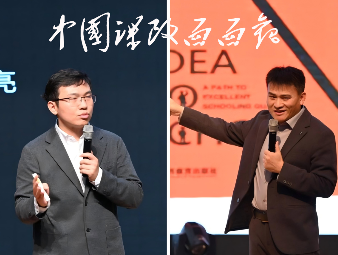 ▲ 聚焦课堂教学改革,右:《中国教师报》编辑部副主任、左:安徽阜阳亲情高中新生代校长杨天亮