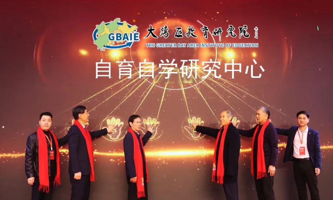 ▲ 教育部教育督导局原副局长林仕梁(左三)、著名的教育家、教育改革家魏书生(右三)、广东省任命政府督学陈健(右二)、《德育报》设原社长、总编张国宏(左二)、红领巾学校校长刘俊波(左一)、湾区教育研究院秘书长杨郁(右一)共同启动大湾区教育研究院自育自学研究中心