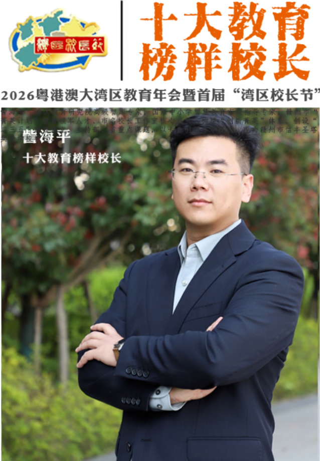 2026湾区校长节“十大教育榜样校长”訾海平:湾区教育研究院高级智库专家,国家中小学智慧教育市级指导专家,赣州市“菁英计划”教育领军人才、市名校长工作室核心成员。构建“创新菁英”体系、创设“二三五”高效课堂,主持部、省重点课题,以专业引领办学提质。现为赣州市信丰圣塔实验学校校长。