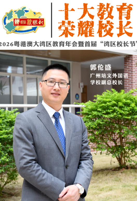 在粤港澳大湾区这片中国开放程度最高、经济活力最强的热土上,教育的创新与融合日益成为驱动未来的核心引擎。在这里,有一位教育者凭借前瞻的视野、笃实的践行以及对民办教育高质量发展的深刻理解,脱颖而出——他就是刚刚荣膺“粤港澳大湾区荣耀校长”称号的广州培文外国语学校副总校长、小学校长郭伦盛。